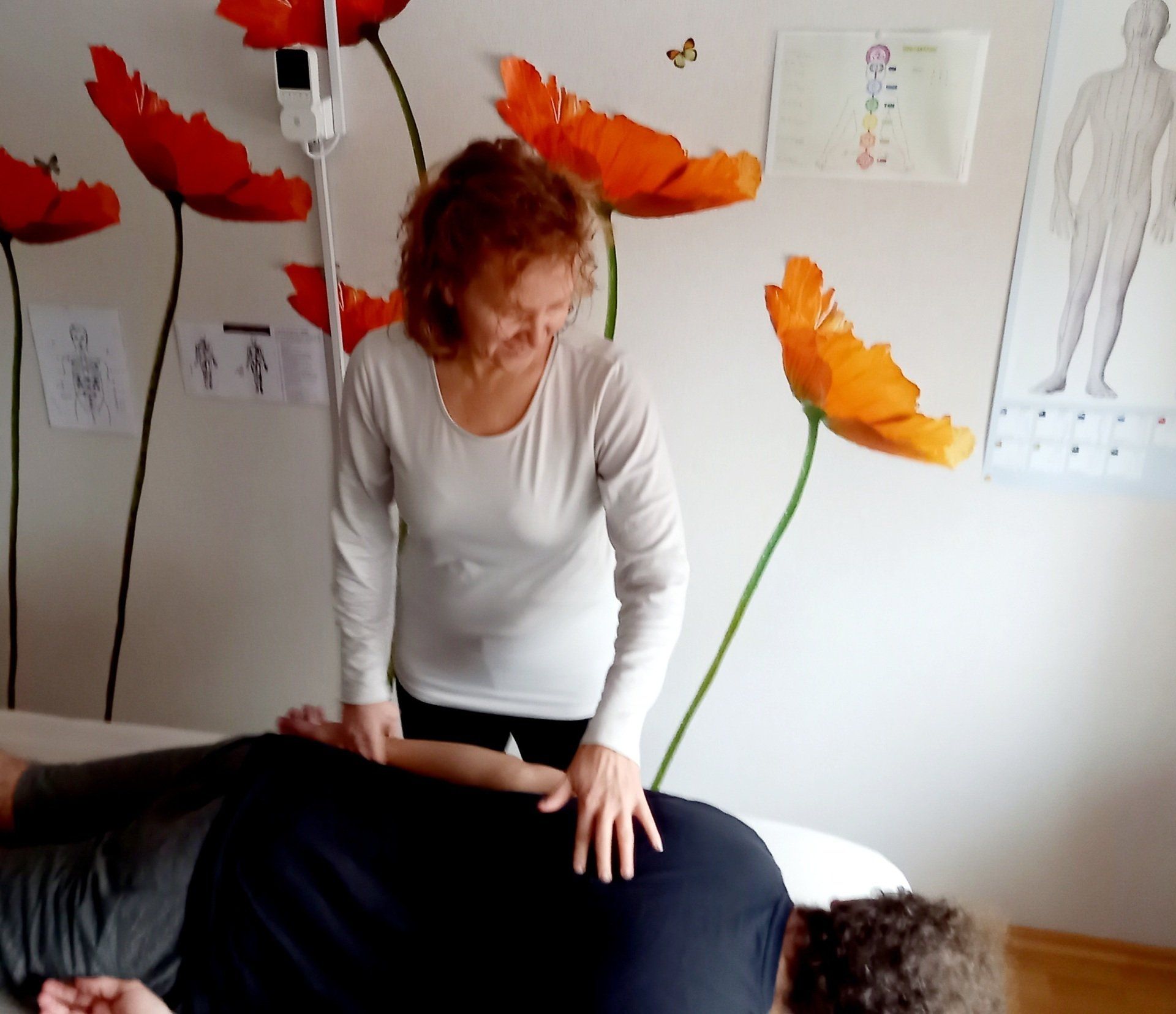 Die manuellen Techniken enthalten Elemente aus der Dorntherapie, Osteopathie oder manueller Therapie.